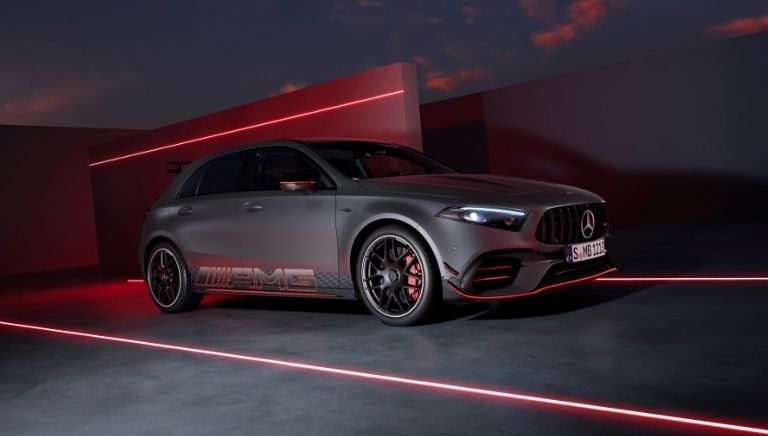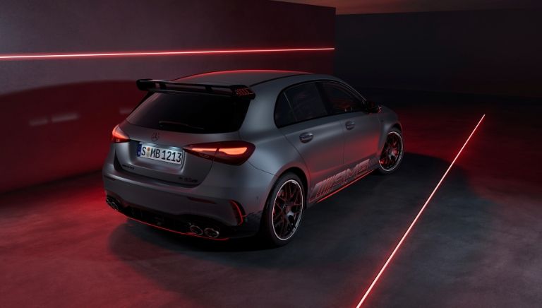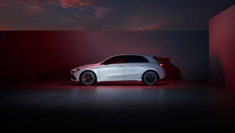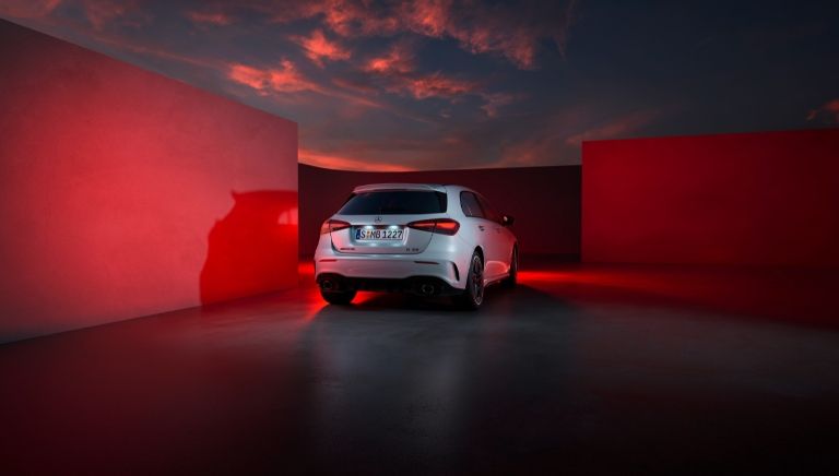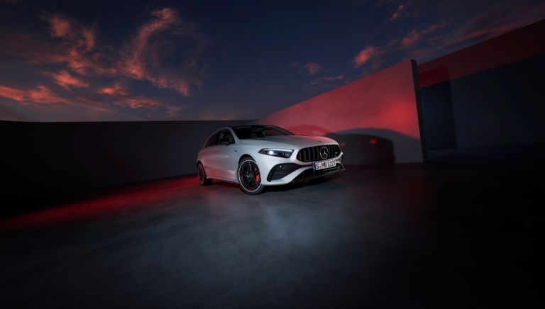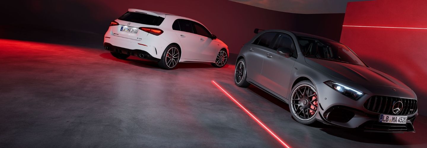Los potentes vehículos compactos AMG A 35 4MATIC y AMG A 45 S 4MATIC+ derrochan expresividad aún antes de ponerse en marcha y prometen a primera vista Driving Performance en estado puro. Presentan una parrilla con perfiles verticales específica de AMG, expresión visible de la dinámica de marcha característica de la marca. Al mismo tiempo, el frontal tipo «Shark Nose», los nuevos faros de contorno nítido, el capó con resaltes longitudinales y el escudo AMG dejan intuir su enorme dinamismo. Las llantas AMG forjadas ponen un punto final atractivo al paquete de elementos dinámicos.